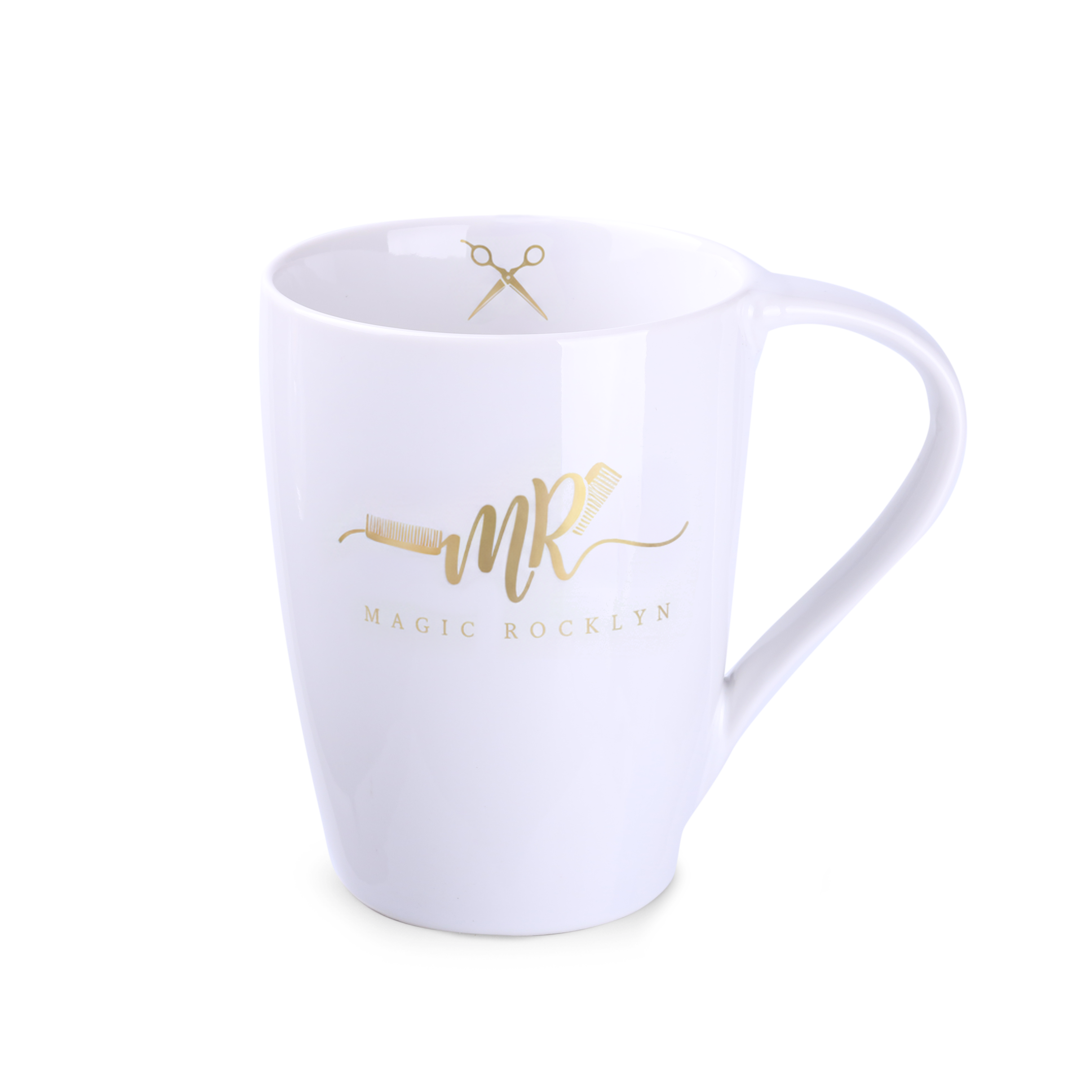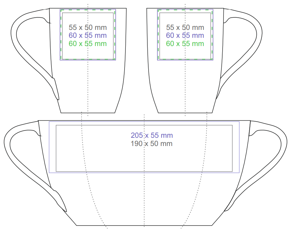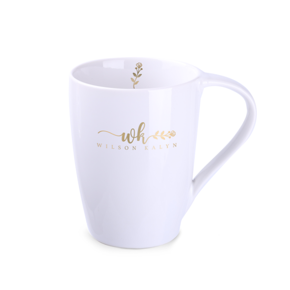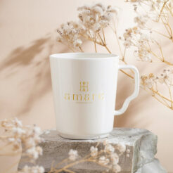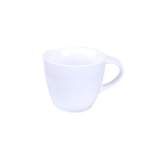 Ein meistverkauftes Modell aus weißem, hochwertigem Porzellan. Dank des originellen wellenförmigen Henkels wird es die Aufmerksamkeit auf die beworbene Marke lenken.